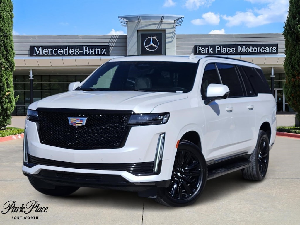 2022 Cadillac Escalade ESV Sport 4D Sport Utility Crystal White Tricoat 4WD 6.2L V8 Backup Camera, Heated Seats, Leather, Panorama Sunroof, Power Lift Gate, Premium Sound, Distronic Plus, Head Up Display, Surround View, 3rd Row, 4WD, Adaptive Cruise Control, AKG Studio 19-Speaker Audio System, Automatic Seat Belt Tightening, Automatic Stop/Start, Body-Color Door Handles, Door Lock & Latch Shields, Electronic Limited-Slip Differential, Enhanced Automatic Emergency Braking, Enhanced Automatic Parking Assist, Glass Breakage Sensor, Heated & Ventilated Driver & Front Passenger Seats, Hitch Guidance w/Hitch View, Integrated Trailer Brake Controller, Power Panoramic Tilt-Sliding Sunroof, Preferred Equipment Group 1SC, Rear Camera Mirror, Rear Camera Mirror Washer, Rear Cross Traffic Alert, Reconfigurable Full-Color Head-Up Display, Reverse Automatic Braking, Running Board Assist Steps, Smart Trailer Integration Indicator, Start/Stop System Disable Button, Theft-Deterrent Alarm System, Trailer Side Blind Zone Alert, Vehicle Inclination Sensor, Vehicle Interior Movement Sensor.Find your dream vehicle at Park Place Mercedes-Benz Fort Worth located at 5601 Bryant Irvin Rd. Fort Worth, TX, 76132, just south of I-20 & Bryant Irvin. At Park Place, you deal directly with our Sales Experience Manager thru our One Touch Sales Process, creating a seamless and hassle-free experience for you. Schedule your personal purchase experience today or go to www.parkplace.com tap the Buy Online button to complete your transaction 100% online. We look forward to serving and showing you why Park Place Motorcars Fort Worth, is Your Place! We have set a standard of excellence that keeps our loyal clients coming back. We look forward to seeing you! We are the Experts in Mercedes-Benz serving the DFW area. Click here to know what your car is worth? Want to learn about our Park Place Protection Plans, click here!