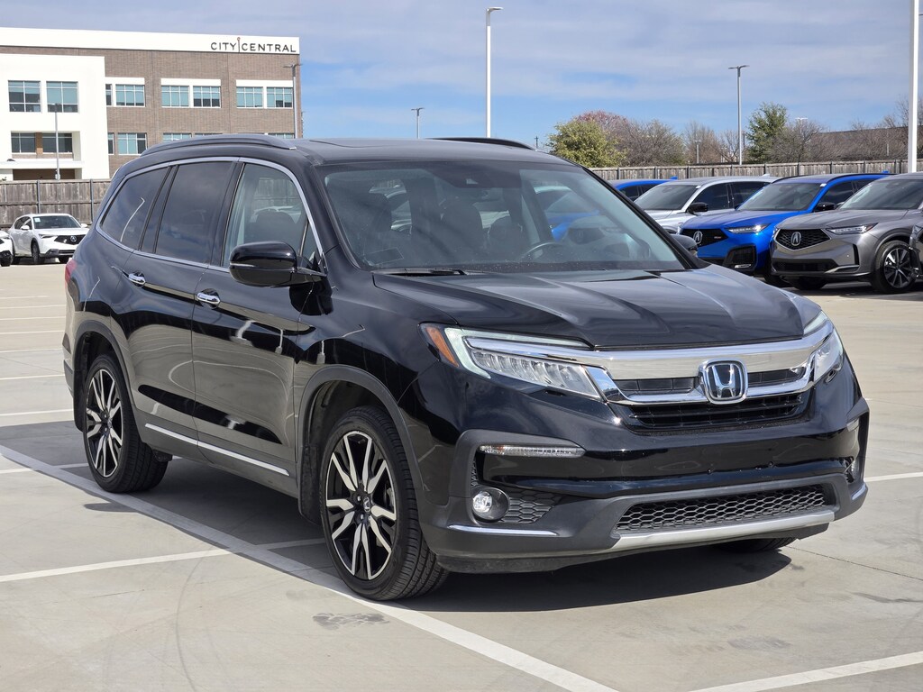 CARFAX One-Owner. Clean CARFAX. Crystal 2022 Honda Pilot Touring 8 Passenger FWD 9-Speed Automatic 3.5L V6 24V SOHC i-VTEC Apple CarPlay/Android Auto, Exterior Parking Camera Rear, Heated Front Bucket Seats, Heated rear seats, Memory seat, Navigation system: Honda Satellite-Linked Navigation System, Power Liftgate, Power moonroof, Radio: 590-Watt Premium Audio System, Wheels: 20 Machine-Finished Alloy.If it's a used car in the Dallas area you're looking for, Park Place Acura has an expansive selection of Certified Pre-Owned Acura vehicles available for Dallas residents. We also carry used luxury cars from many top car manufacturers. Our used car inventory is continually changing and all of our cars are carefully inspected and detailed before they are put on the lot. 20/27 City/Highway MPG